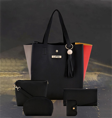 Black solid shoulder bag, with tasselled detail1 main compartment, has a zip closure, external pockets Tablet sleeve: noTwo handlesComes with two pouch, s;ing bag and walletSize & Fit :Handbag :Height: 29 cmWidth: 12 cmDepth: 12 cmMaterial & Care : PuWipe with a clean, dry cloth when needed