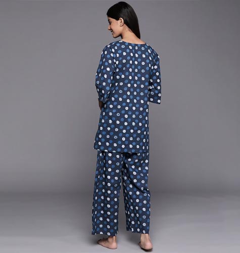 Gift yourself a relaxing sleep by slipping into this super-soft night suit. Whether you wear it to bed or lounge around in it at home, this set will provide you maximised comfort. Size & Fit Size worn by the model: S Chest: 32" Waist: 28" Hips: 33" Height: 5'7" Material & Care Cotton Gentle Machine Wash